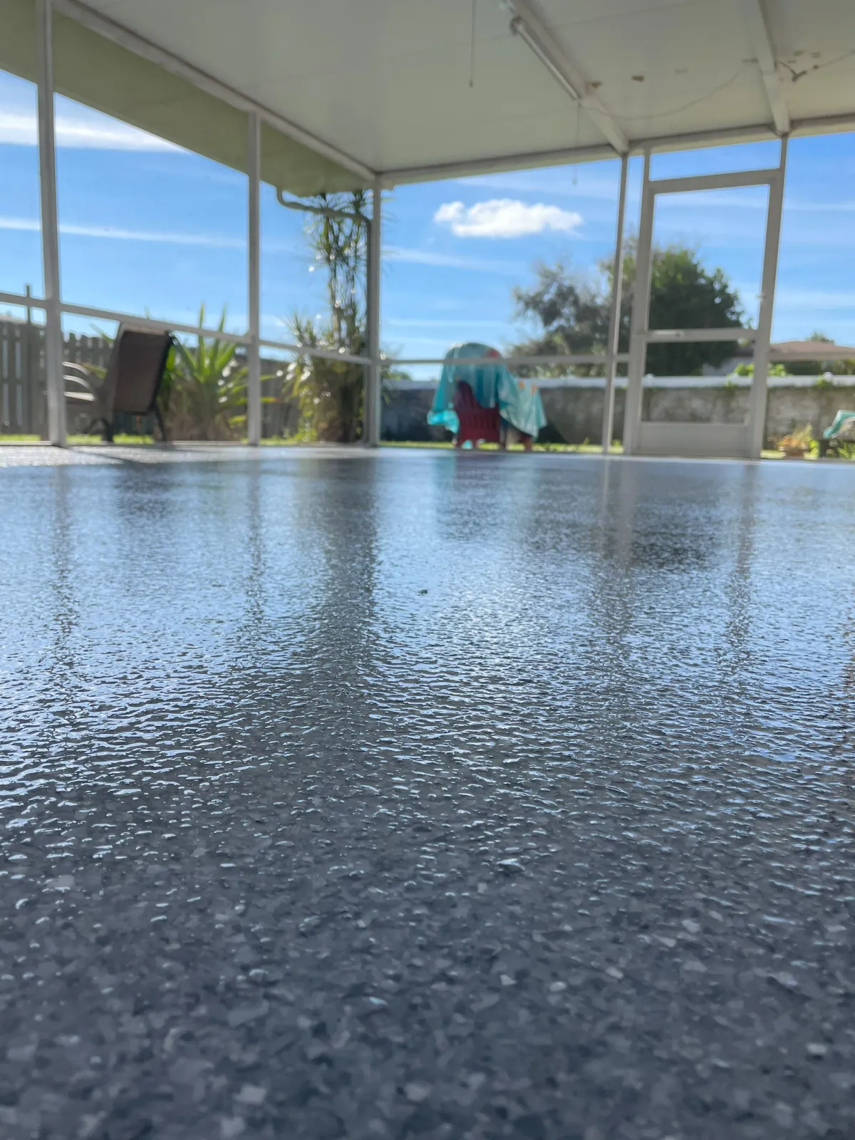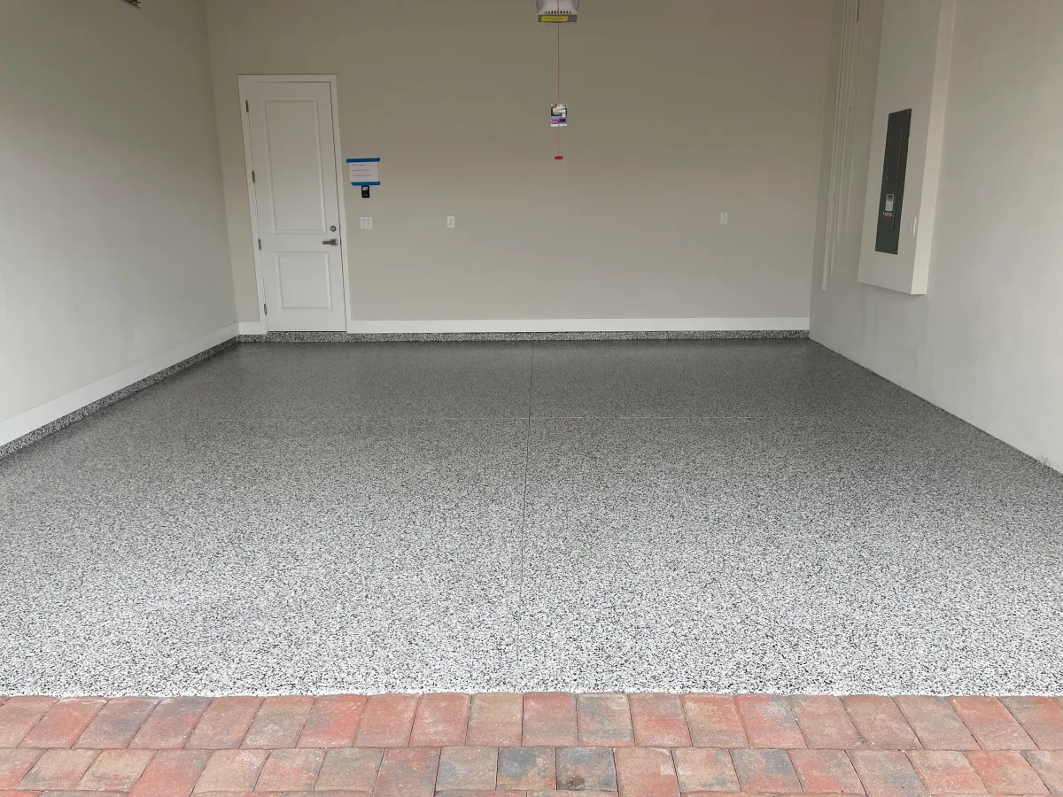 Not with us! We use UV-stable polyaspartic topcoats that resist yellowing, fading, and peeling — even in the Florida sun.